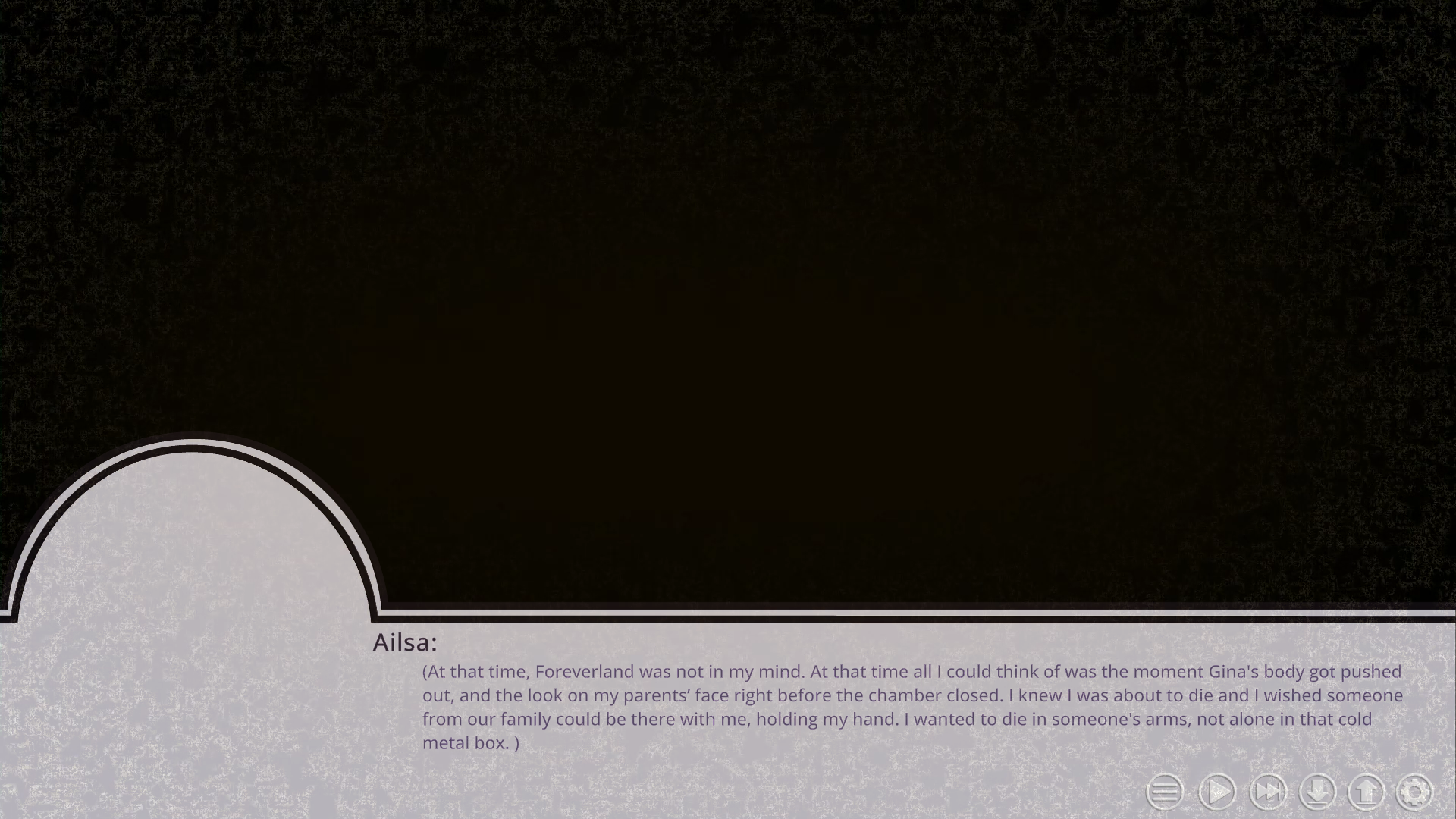 Another thing this game makes me think about what it means for a child—or a digital copy of a child—to “grow up” within a virtual reality. Like I just mentioned, Ailsa is nine when she enters Foreverland, and her reason for doing so is the reasoning of a child: she wants her family to be together forever, just as they always have been.
